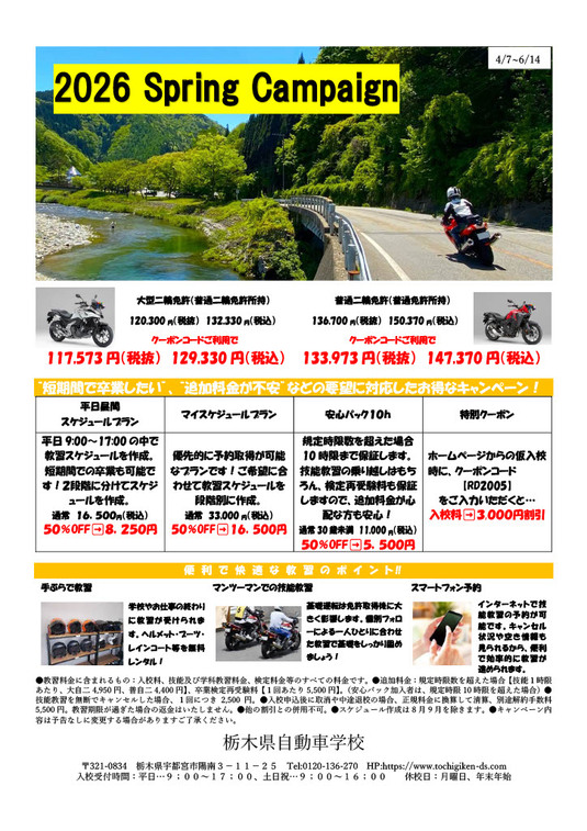 【二輪免許】Spring Campaign ~春のお得なキャンペーン~